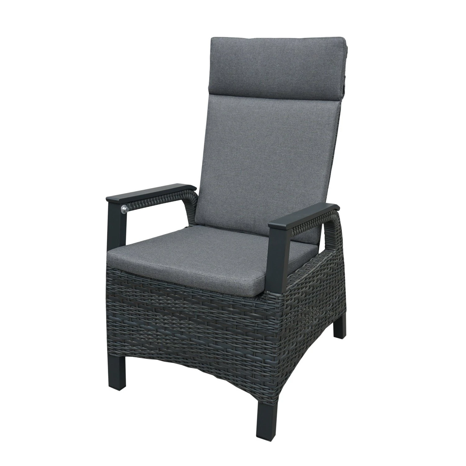 Ben jij op zoek naar een comfortabele tuinstoel? Dan is de FABIO DINING van het merk Royal Seasons wellicht iets voor jou! Met de FABIO DINING stoel haal je meteen zeer goede kwaliteit in huis (of eigenlijk, in de tuin!). De stoel is gemaakt van hoogstaand wicker in een antraciet kleur en wordt geleverd inclusief bijbehorende kussens.